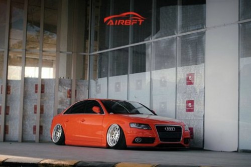 “引动风潮”奥迪A4改装AIRBFT空气悬挂案例,今天给大家分享奥迪A4的改装案例,由国外代理提供,斗牛士红的车膜,低趴专用轮毂搭配AIRBFT空气悬挂系统,完美的展示姿态之风,这种改装风格在外国非常流行的,叫HellaFlush改装风格,以及姿态为主,贴地行驶,空气悬挂不仅可以玩姿态,遇到坑洼路面还能升高车身底盘增加通过性。