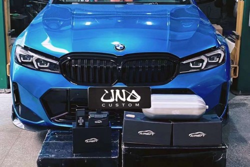 #蓝色#姿态#宝马3系改装AIRBFT空气悬挂案例,今天给大家分享宝马的改装案例,新款三系的底盘代号都是G底盘的,G20、G21、G28等等,避震改装方面也是非常合适的,空气悬挂改装是把原车的弹簧避震换成了专车专用的气囊避震,从来通过电控系统实现升降低趴的效果。