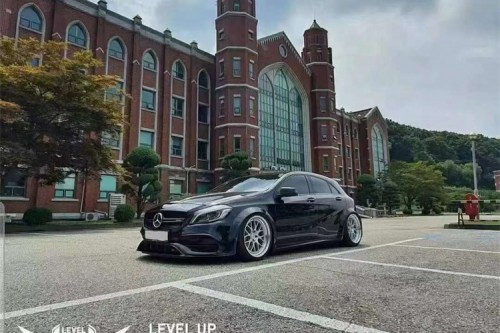 #另类小钢炮#奔驰A45改装AIRBFT空气悬挂案例,今天给大家分享奔驰的改装案例,由代理提供,奔驰A45是一款小钢炮车型,外观小巧玲珑,动力也是不俗的,再搭配上AIRBFT空气悬挂系统,和定制的轮毂数据,HF风格姿态展现我们面前,下面来欣赏一下低趴姿态吧。