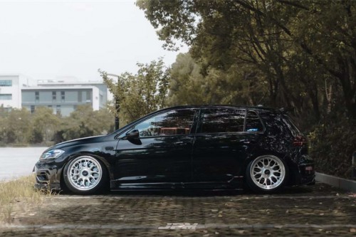 总之,这辆改装后的黑色大众高尔夫,以AIRBFT空气悬挂为引,将低趴美学演绎得淋漓尽致,成为了街头巷尾一道不可多得的风景线,让每一位路过的行人都不禁驻足侧目,为之倾倒。